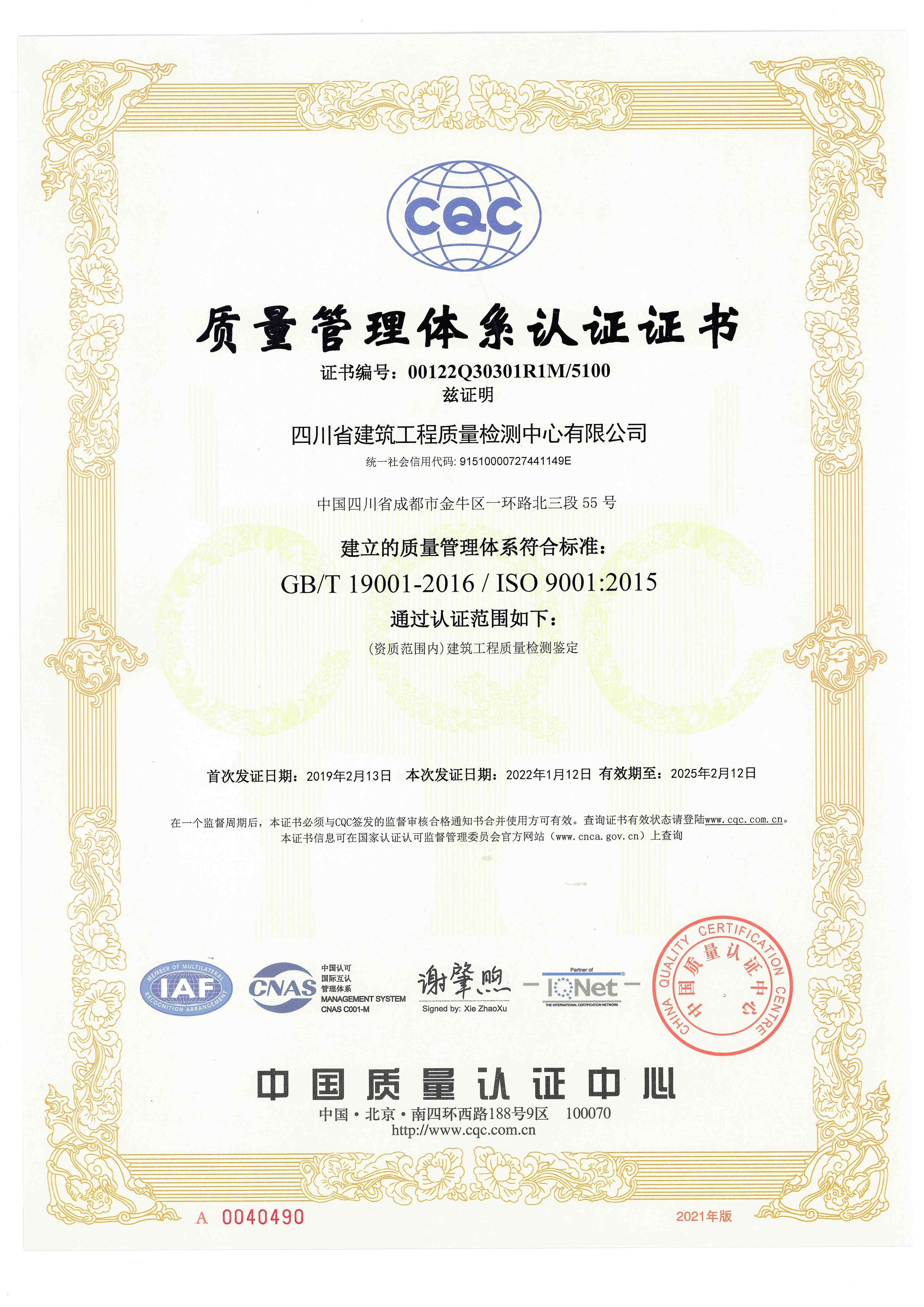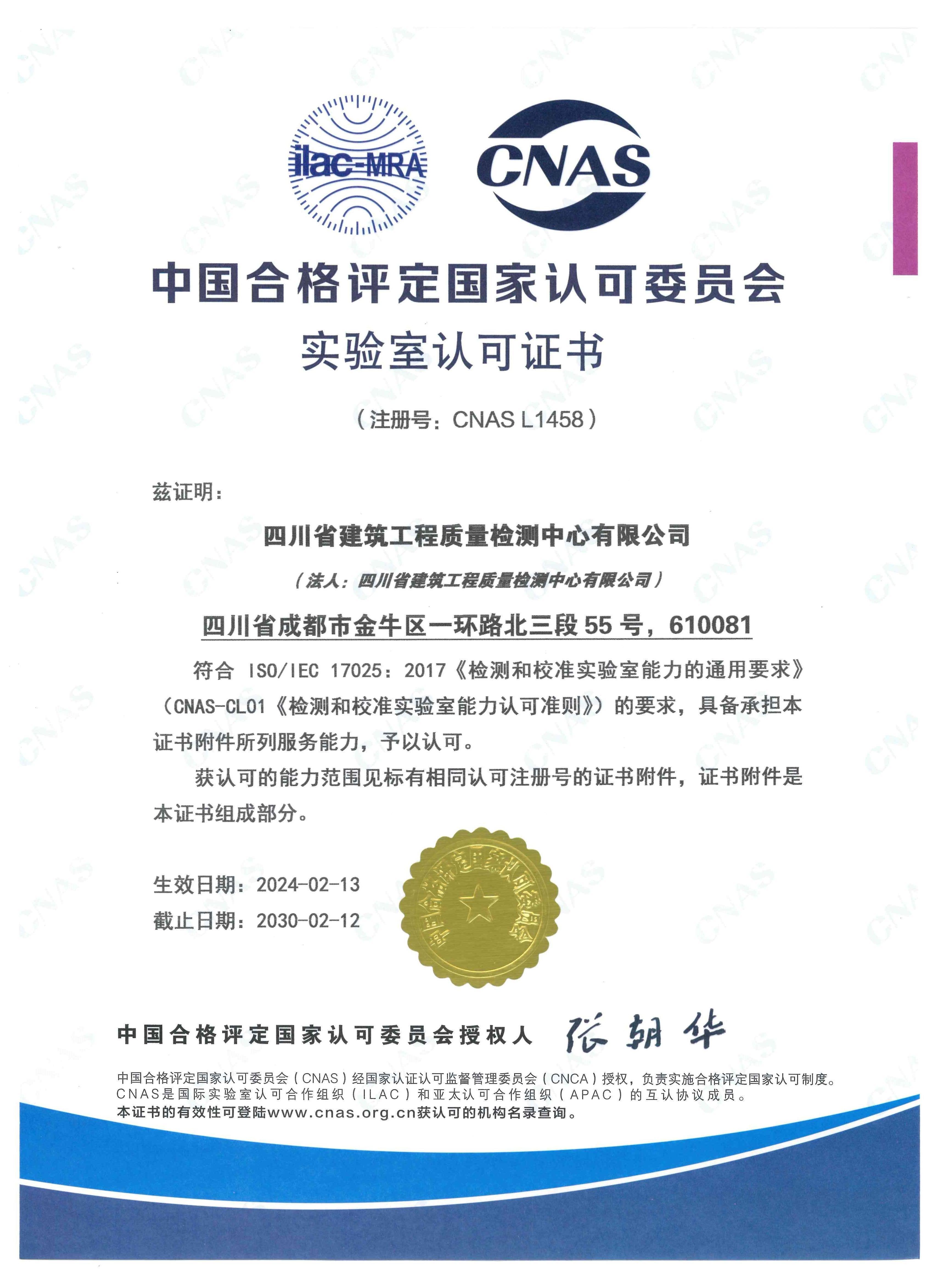 四川省建筑工程質量檢測中心有限公司